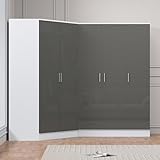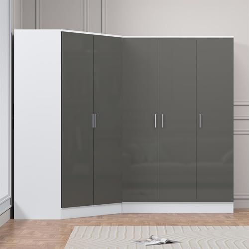 Reflect 2 Piece Wardrobe Bundle | 2 Door Corner + 3 Door Plain | Grey Gloss & Matt White Finish | H: 180cm x W: 179cm x D: 103cm | Modern Bedroom Furniture Storage Solution