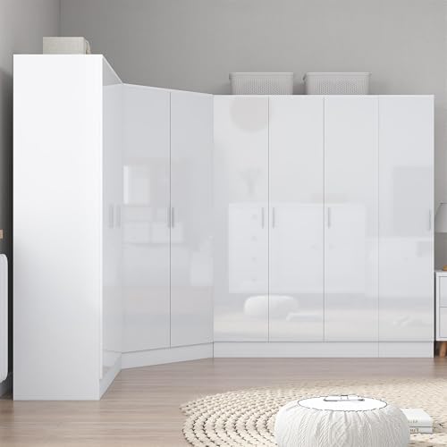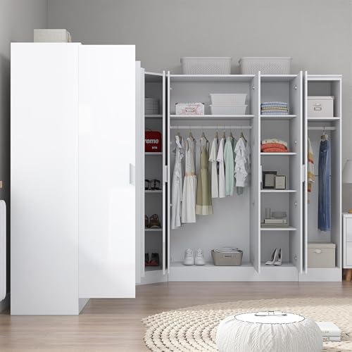 Reflect 4pc Wardrobe Bundle | 2 Door Corner + 2x 3 Door Plain + 1 Door Plain | White Gloss & Matt White Finish | H: 180cm x W: 179cm x D: 103cm | Modern Bedroom Furniture Storage Solution