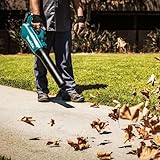 The DUB184 is a cordless blower which is powered by a Makita 18v LXT lithium ion power tool battery. It has an energy efficient brushless motor for longer runtimes and variable speed control with a cruise control function for locking the speed. A lockable trigger also prevents hand pain when using the machine continuously and means the operator does not have to keep the trigger depressed for extended periods. This model (DUB184RT) is supplied ready for use with a 5.0ah lithium ion battery and a battery char