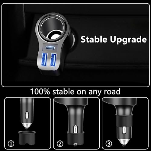 [4 in 1] USB C Car Charger Adapter 168W [PD3.0 + Dual USB A Port] 12V/24V USB Cigarette Lighter Socket Splitter Adapter Compatible with iPhone 17/Air/16/15 Pro Max, iPad Pro,Samsung Galaxy etc