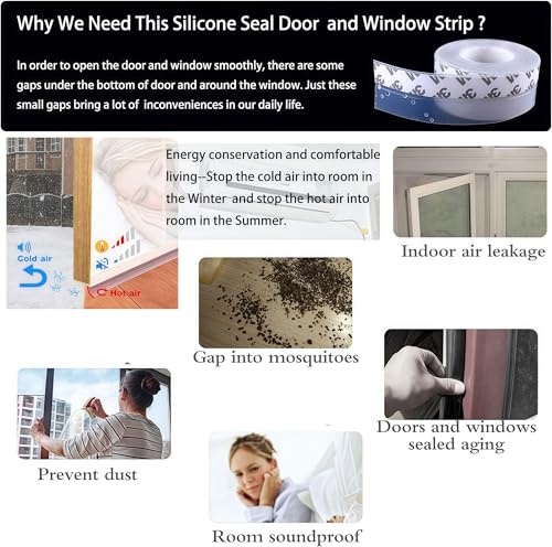 Silicone Seal Door Strip Bottom - 8M/26ft (W: 35MM) Silicone Sealing Sticker Self Adhesive Weather Stripping for Gaps of House, Glass Shower, Window and Door, Weatherproof Soundproof Insect Proof