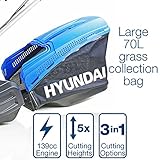 Hyundai 19" 48cm / 480mm Self Propelled Electric Start 139cc Petrol Roller Lawnmower, 5 Cutting Heights, 70l Grass Bag, Foldable Handles, 3 Year Warranty