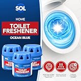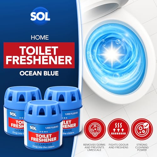SOL 3pk x 70g Toilet Blocks Fresheners, Ocean Scented Blue Cistern, Last 1000 Flushes, Prevents Limescale, Cleans Bowl Rims, and Loo Cleaner for Bathroom Air, Room, Home Airfreshener
