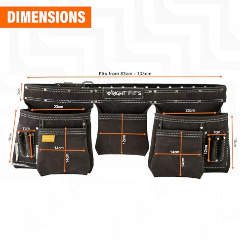 WrightFits Leather Apron Tool Belt, Heavy Duty Tool Pouch with Multi Pockets, Pr