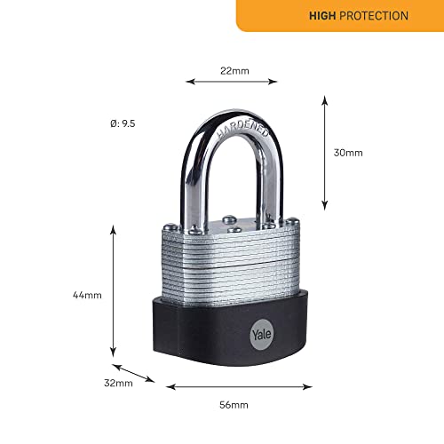 Yale - Y125B/50/129/1 High Security 50mm Laminated Steel Padlock - Open Hardened Steel Shackle - 3 Keys