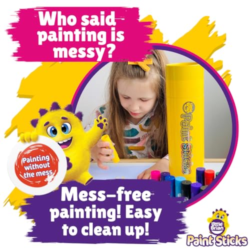Little Brian Paint Sticks For Kids - 30 Pack Assorted Colours & Fun Storage Tube - Mess-Free, Easy Clean Up, Fast Drying Action, Vibrant Colours, Multi-Surface, Twist & Paint