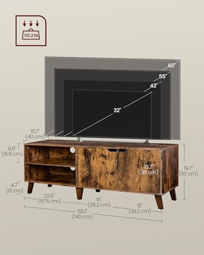 VASAGLE TV Cabinet with 2 Doors, Rustic Brown / 140L