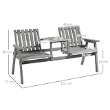 Outsunny Wooden Garden Loveseat, 2-Seater Garden Chair with Table & Parasol Hole, Outdoor Bench for Porch, Patio, Grey