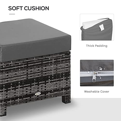 OUTSUNNY Rattan Footstool Wicker Ottoman w/ Padded Seat for Backyard Garden in Grey Grey