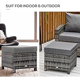 Outsunny Rattan Footstool Wicker Ottoman with Padded Seat Cushion Outdoor Patio Furniture for Garden Poolside Living Room, 50 x 50 x 35 cm, Grey