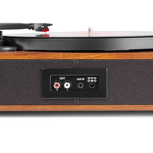 Fenton RP162D Wood Turntable Record Player with Bluetooth Output, Built-In Speakers and Vinyl Audio Transmitter, Home Audio System for Wireless Music Streaming