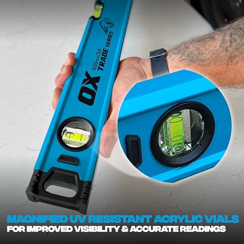 OX Trade 3PC Box Spirit Level Set (600mm, 1200mm, 1800mm) with a Carry Bag, Lightweight High-Accuracy Spirit Level With Magnified Vials, Shock-Absorbing End Caps, Cushioned Grip, OX-T505903