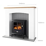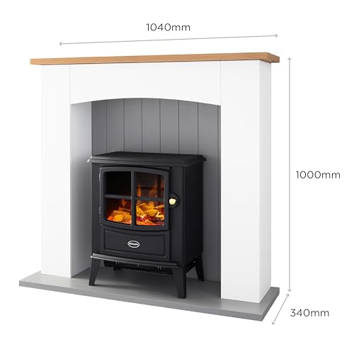 Dimplex Oakmead Optiflame Electric Stove Suite, Black Stove with Logs, Fully Assembled White Surround, Grey Hearth and Wood Mantel, 2KW Heater, Choice of 1000 or 2000W Heat Settings and Remote Control