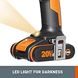WORX WX370.1 PowerShare 20V Cordless Combi Hammer Drill Kit with 2 Batteries, Charger and Carry Bag, 6800 BPM / 27200 BPM, 0-400/0-1600/min, High Torque Impact Drill Set for Wood, Metal and Masonry
