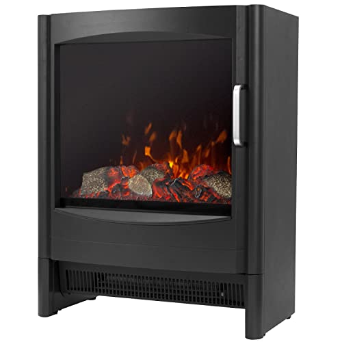 Sureflame Keston Electric Stove/Fireplace with Straight Pipe – Traditional Black Design, Realistic LED Flame Effect, 1.8kW Heat Output, Compact & Easy to Install