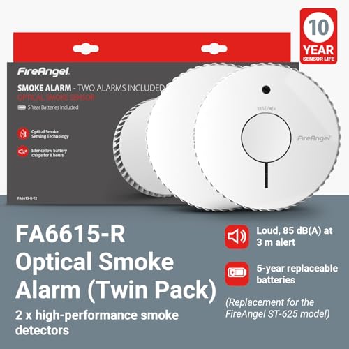FireAngel Optical Smoke Alarm 2-Pack - FA6615-R 10-Year Smoke Alarms for Home with 5-Year Batteries - Smoke Detector Fire Alarm - ST-625 Replacement