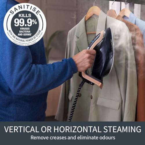 Tefal GV9820G0 High Pressure Steam Generator Iron with Smart LED Light, 750g/min Steam Boost, 9 Bar Pressure, Horizontal and Vertical Steaming, GV9820 Pro Express Vision, Black & Gold