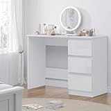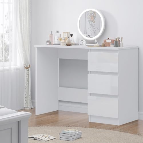 FWStyle White Gloss Vanity Makeup Dressing Table Desk With 3 Deep Drawers White