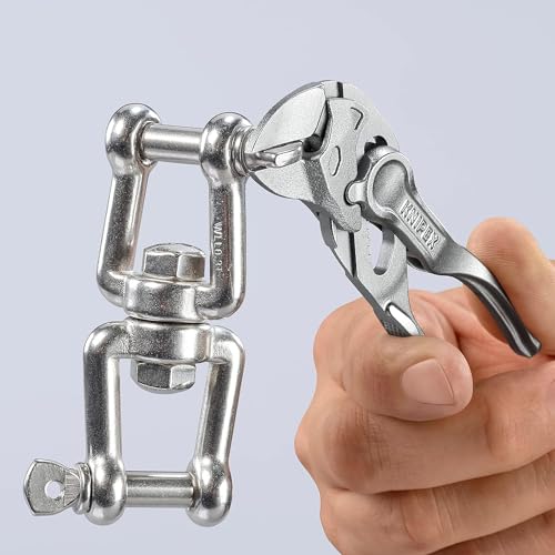 KNIPEX Pliers Wrench XS Pliers and a Wrench in a Single Tool in Blister Chrome-Plated Embossed, Rough Surface 100 mm, 86 04 100 BK