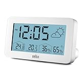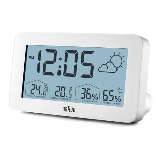 Braun Digital Weather Station Alarm Clock, LCD Display, White, BC13WP