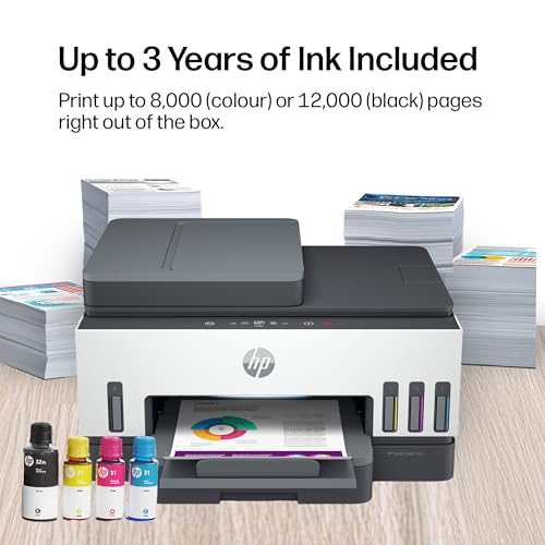 HP Smart Tank 7605 All in One Printer | Perfect for Home | Colour | Wireless, Ethernet | Print, Scan, Copy, Fax | Refillable, Includes up to 3 Years of Ink | 2-Sided Printing | Document Feeder