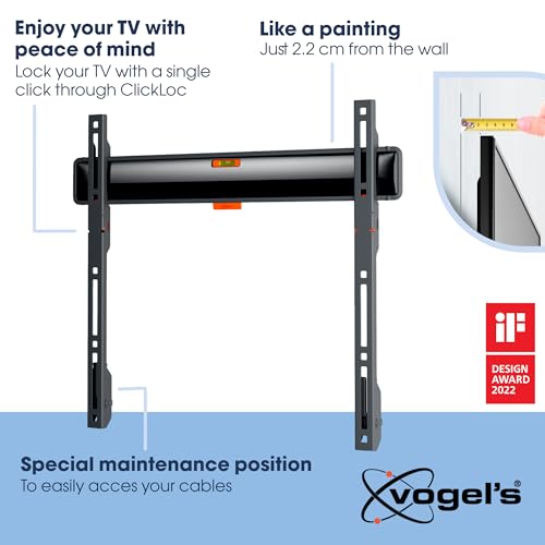 Vogel's TVM 3405 fixed TV wall bracket for 32-77 inch TVs, Max. 110 lbs (50 kg), Flat TV wall mount max. VESA 400x400, Universal compatibility, Distance to the wall just 0.87 inch