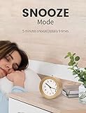 aboveClock Alarm Clock Bedside, No Ticking Bedside Clock with Snooze and Night Light Function, Analogue Clock Battery Powered for Bedroom, Home, Kitchen, Travel, Natural Wood