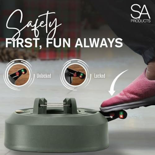 SA Products Automatic Christmas Tree Stand for Real Tree - Heavy-Duty Plastic & Metal - 3.5-Litre Water Reservoir Base - For Xmas Trees Up To 8.2Ft. with 12cm Trunk - Small 33.02x109.22x7.62cm