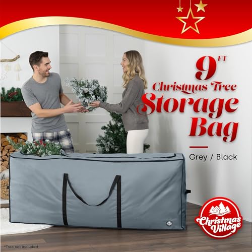 Christmas Village 9ft Christmas Tree Storage Bag - Heavy Duty Extra Large Christmas Tree Bag with Full Length Double Stitched Zip and Carry Handles (Grey, 9ft Xmas Tree Storage Bag)