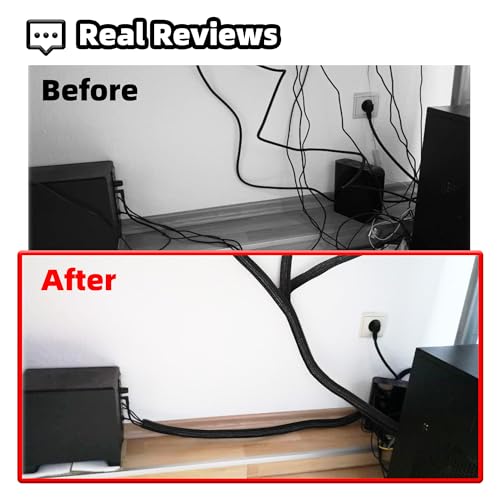 Black Cable Tidy Sleeve(Length 10ft, Diameter 1/2 to 1 Inch Expandable), Braided Cable Sleeve Split& Self-wrap Sleeving for Usb Cable Power Cord Audio Video Cable, Protector Animal from Chewing Cords