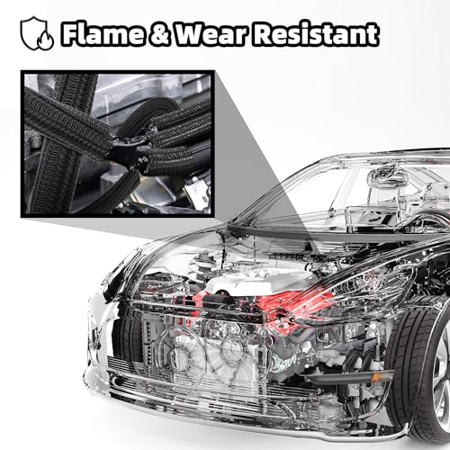 Annex Black Braided Cable Sleeve 10ft Expandable Cord Organiser Protector