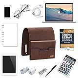 SIMBOOM Sofa Remote Control Holder Bag, Armchair Caddy 5 Pockets for Magazine, Tablet, Phone, Earphone and Pens, Non-Slip with Long Flap and Hook and Loop - Coffee