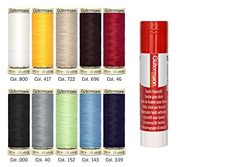 Gutermann Thread Set: Sew-All: 10 x 100m with Textile Glue Stick
