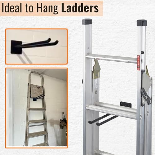 ALWORG Ladder Hooks for Garage Wall - Heavy Duty Storage Hangers Wall Mount Brackets to Hang Garden & Shed Tools, Chairs, Tire and More - Van Storage Solutions