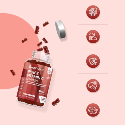 WeightWorld Iron Gummies with Vitamin C - 38mg per Serving - 120 Gummies