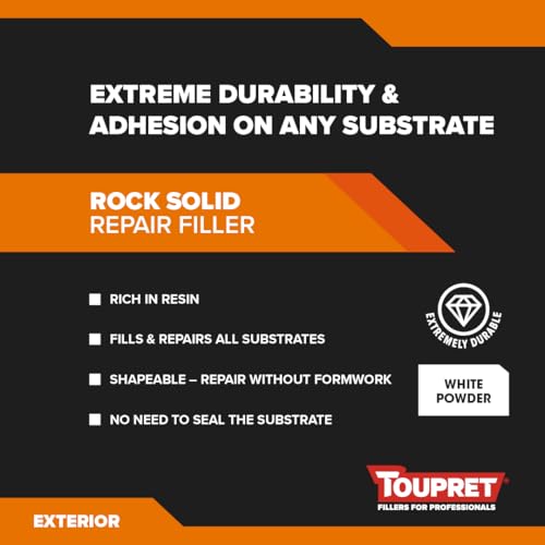 Toupret Rock Solid Repair Filler - High‑Strength Exterior Masonry Repair Powder - No Depth Limit, Weather‑Resistant, Paint‑Ready in 24 Hours - Cement-Based - 5kg