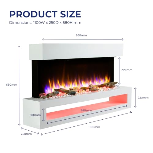 Endeavour Fires Fenwick Wall Mounted Electric Fireplace 110cm/43” 1&2kW, 7 day Programmable Remote Control Fire with an off White Surroud