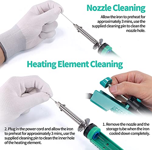 YIHUA 929D-V Electric Vacuum Desoldering Iron Soldering iron Kit Solder Sucker Desoldering Pump with Shorter Charging Handle and Desoldering Nozzles 1mm 1.2mm 2mm for Through-Hole Desoldering(UK PLUG)