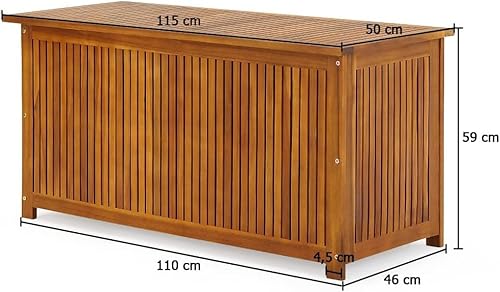 CASARIA® Wooden Garden Storage Box With Lid | Outdoor Waterproof | 115cm | Pre-Oiled Acacia Wood | Inner Tarpaulin | Wood Chest For Cushions Pillows | Outdoor Garden Terrace | 205 Litres