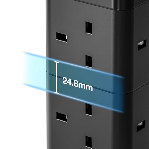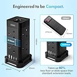VonHaus Surge Protected 8 Plug Tower Extension Lead with 2 USB-C Ports in Black Black