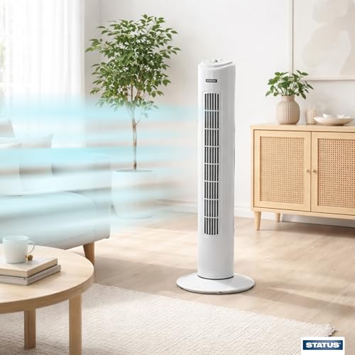 Status 32-Inch Tower Fan with 3 Speed Settings, Oscillating Slim Cooling Fan for Living Room, Bedroom and Office Use, White (S29TOWERFAN1PKB)