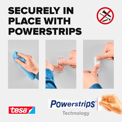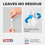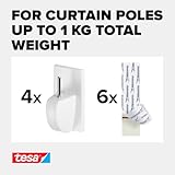 tesa Powerstrips Curtain Hooks - Self-Adhesive Curtain Hooks - Removable and Reusable - Up to 1 kg Load - 1 x 4 Pieces - White