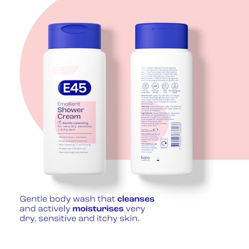 E45 Shower Cream for Dry, Sensitive, and Itchy Skin - Moisturising Body Wash for Men and Women - Helps Maintain Skin pH - Suitable for Eczema and Dermatologically Tested - 200 ml