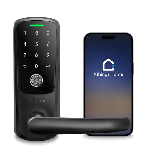 ULTRALOQ Latch 5, World's First Integrated WiFi Smart Lock (Black) with Fingerprint ID, 5-in-1 Electronic Keyless Entry Handle with Bluetooth, Biometric Fingerprint and Touch Digital Keyboard