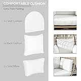 Outsunny Oversized Garden Egg Chair, Outdoor Wicker PE Rattan Chair with Thickened Padded Cushions and Pillows for Balcony, Porch, Khaki