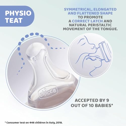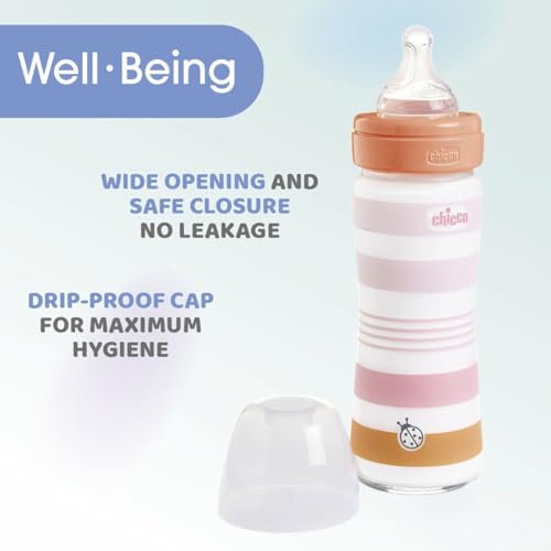 CHICCO Wellness Bottle Slow Flow with Physio Teat in Soft Silicone and Soft Sense Finish, Anti-Colic, Reduces Regurgitation and Irritability, Glass Bottle 240 ml, 0 Months+ Neutral