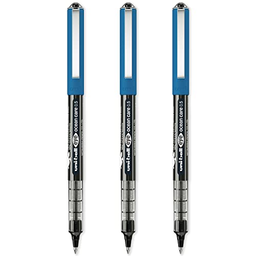 uni-ball Eye Ocean Care UB-150ROP Black Rollerball Pens. Micro 0.5mm Ballpoint Tip for Super Smooth Writing, Drawing, Art, Crafts and Colouring. Fade and Water Resistant Liquid Uni Super Ink. 3 Pack