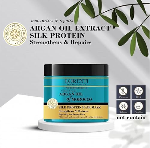 Lorenti Deep Conditioning Hair Mask 500 ml | For Dry, Damaged, Dense & Frizzed Hair | Contains Vitamin B7 & Proteins to Balance & Moisturize Hair | 16.9 Fl Oz (Argan Oil)