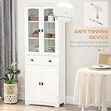 HOMCOM Kitchen Cupboard Storage Cabinet with Shelves & Drawer, Glass Door in White White