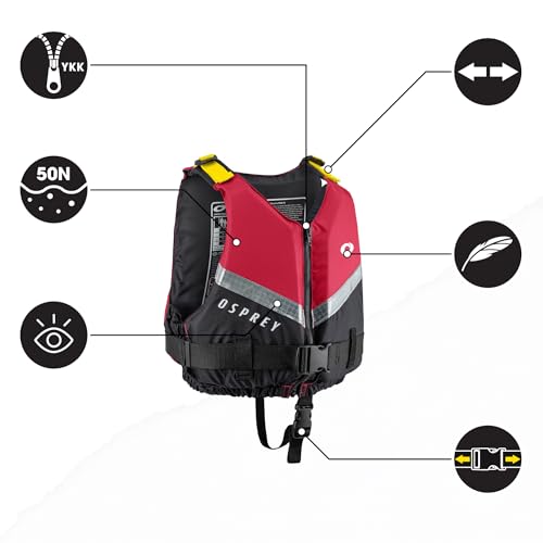 Osprey Kids Buoyancy Aid | Junior 50N Waterproof Buoyancy Vest for Watersports, Kayaking, Paddle Boarding, Watersports, Multiple Colours, Red